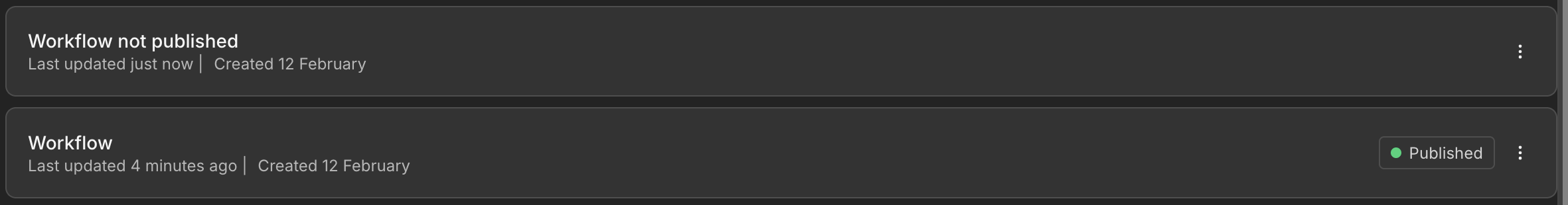 On the Workflows page, if a workflow is published an indicator will be displayed on the card.